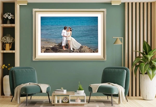 Mẫu khung ảnh treo ảnh cưới trong phòng khách